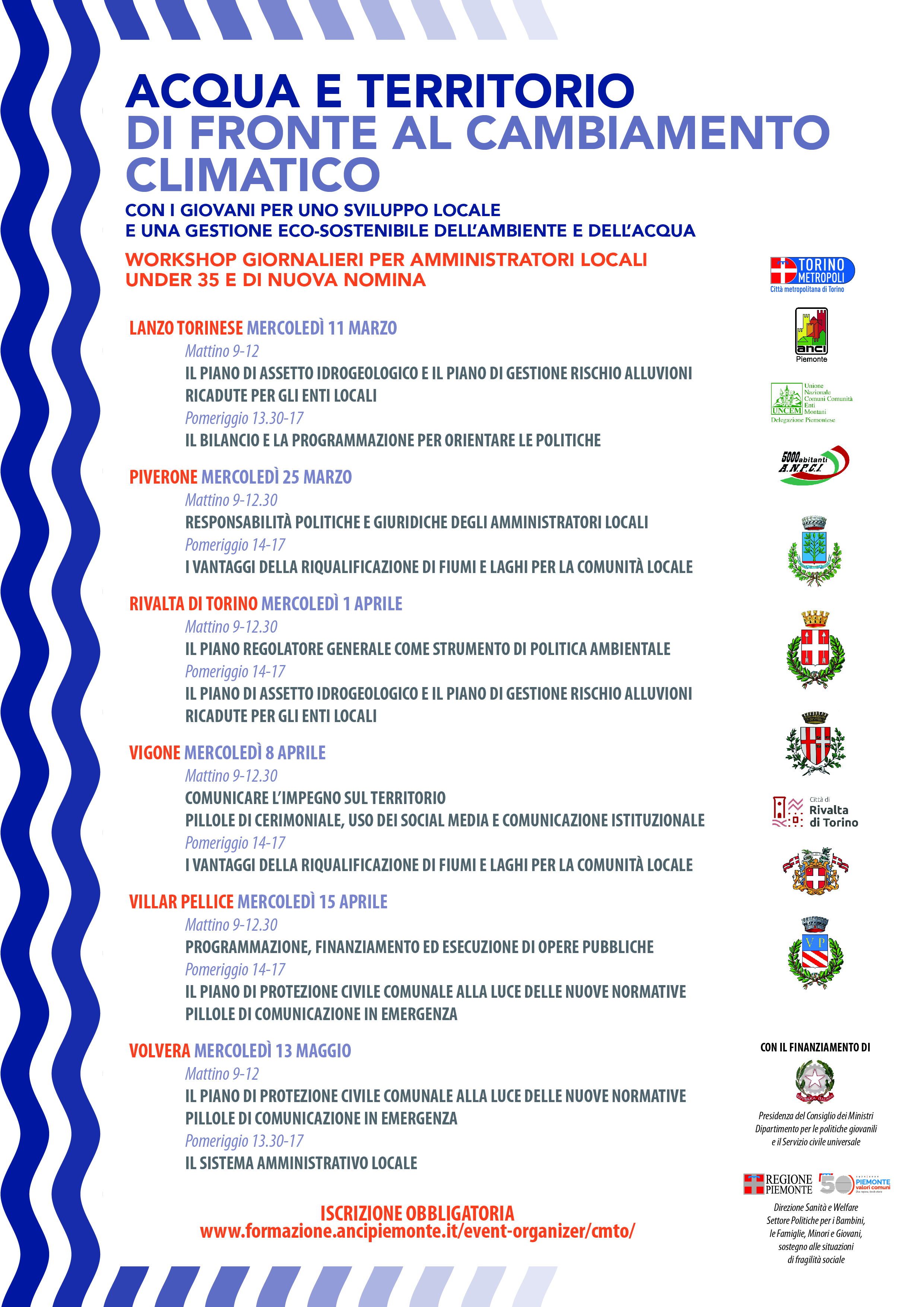 La Città Metropolitana di Torino, con la collaborazione dell'ANCI e dell'UNCEM organizza una serie di workshop giornalieri per amministratori locali under 35 e di nuova nomina.