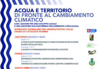 3 - 11 marzo 2020 Acqua e territorio di fronte al cambiamento climatico. La Città Metropolitana di Torino, con la collaborazione dell'ANCI e dell'UNCEM organizza una serie di workshop giornalieri per amministratori locali under 35 e di nuova nomina. Nell'ambito del progetto mercoledì 11 marzo presso la struttura polivalente LanzoIncontra del Comune di Lanzo Torinese si terranno i seguenti incontri:mattino 9-12: Il...