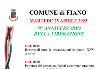 15 - 26 aprile 2023 78° ANNIVERSARIO DELLA LIBERAZIONE Per i dettagli e il cronoprogramma della Manifestazione, vedasi l'immagine del volantino pubblicato. L'Amministrazione Comunale invita tutta la cittadinanza a partecipare attivamente, grazie.