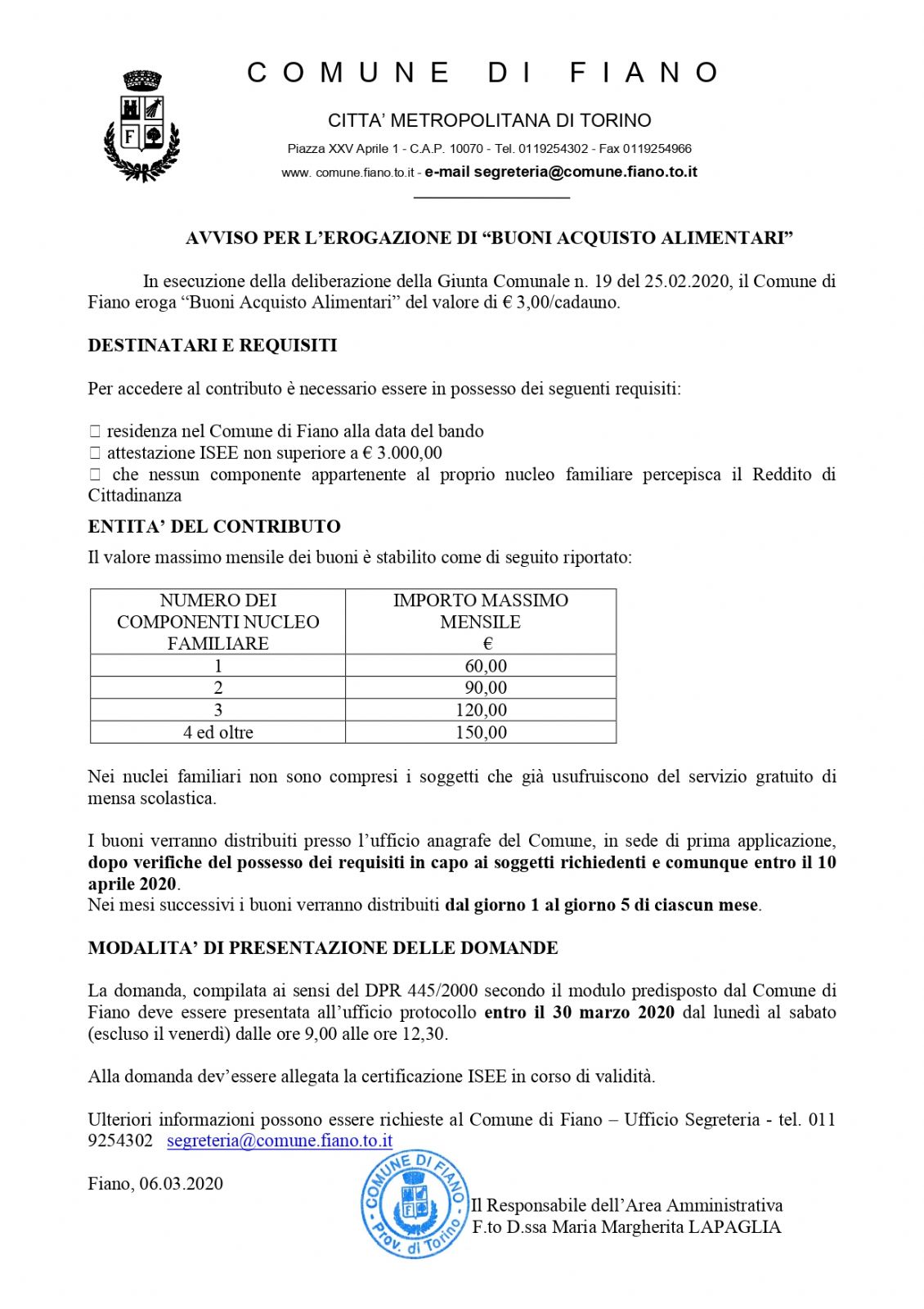 - AVVISO PER L'EROGAZIONE DI "BUONI ACQUISTO ALIMENTARI"[.pdf 66,34 Kb - 06/03/2020]
