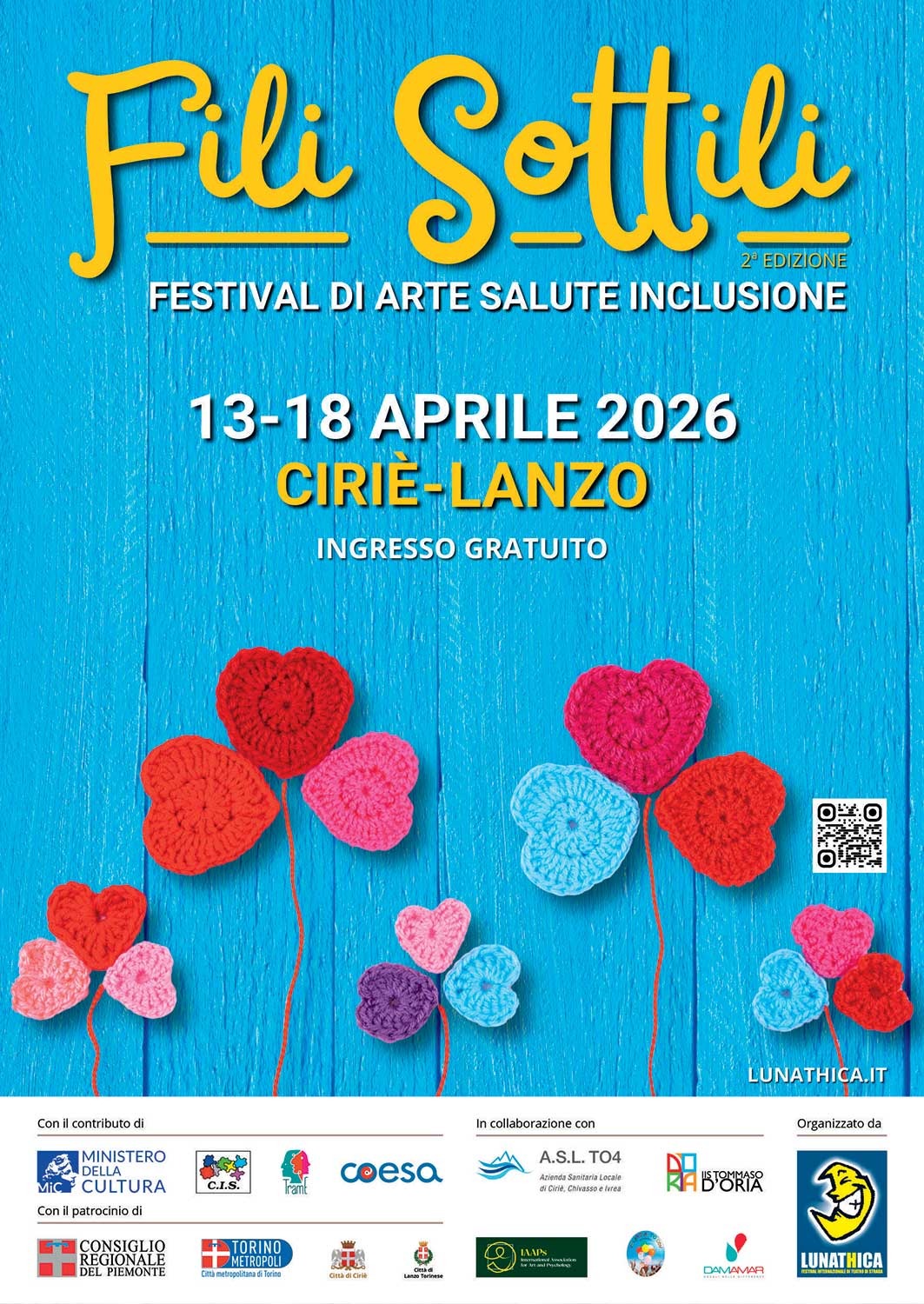 Dal 13 al 18 aprile 2026 torna Fili Sottili, il Festival di Arte, Salute e Inclusione organizzato da Lunathica. Alla sua seconda edizione, il festival andrà in scena nei Comuni di Cirié e di Lanzo e vedrà l’alternanza di spettacoli, convegni e dibattiti, workshop teatrali e laboratori creativi per riflettere sui temi della salute mentale e della disabilità.